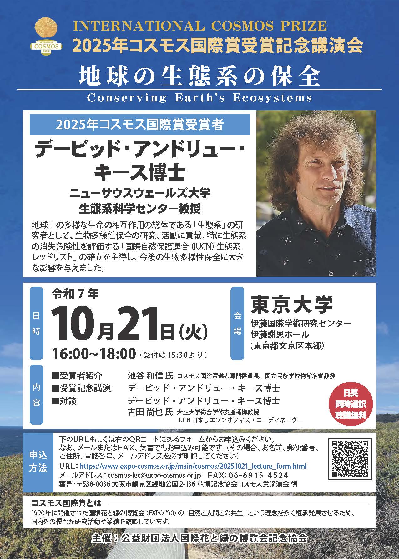 2025年コスモス国際賞受賞記念講演会を開催します | 公益財団法人 国際花と緑の博覧会記念協会