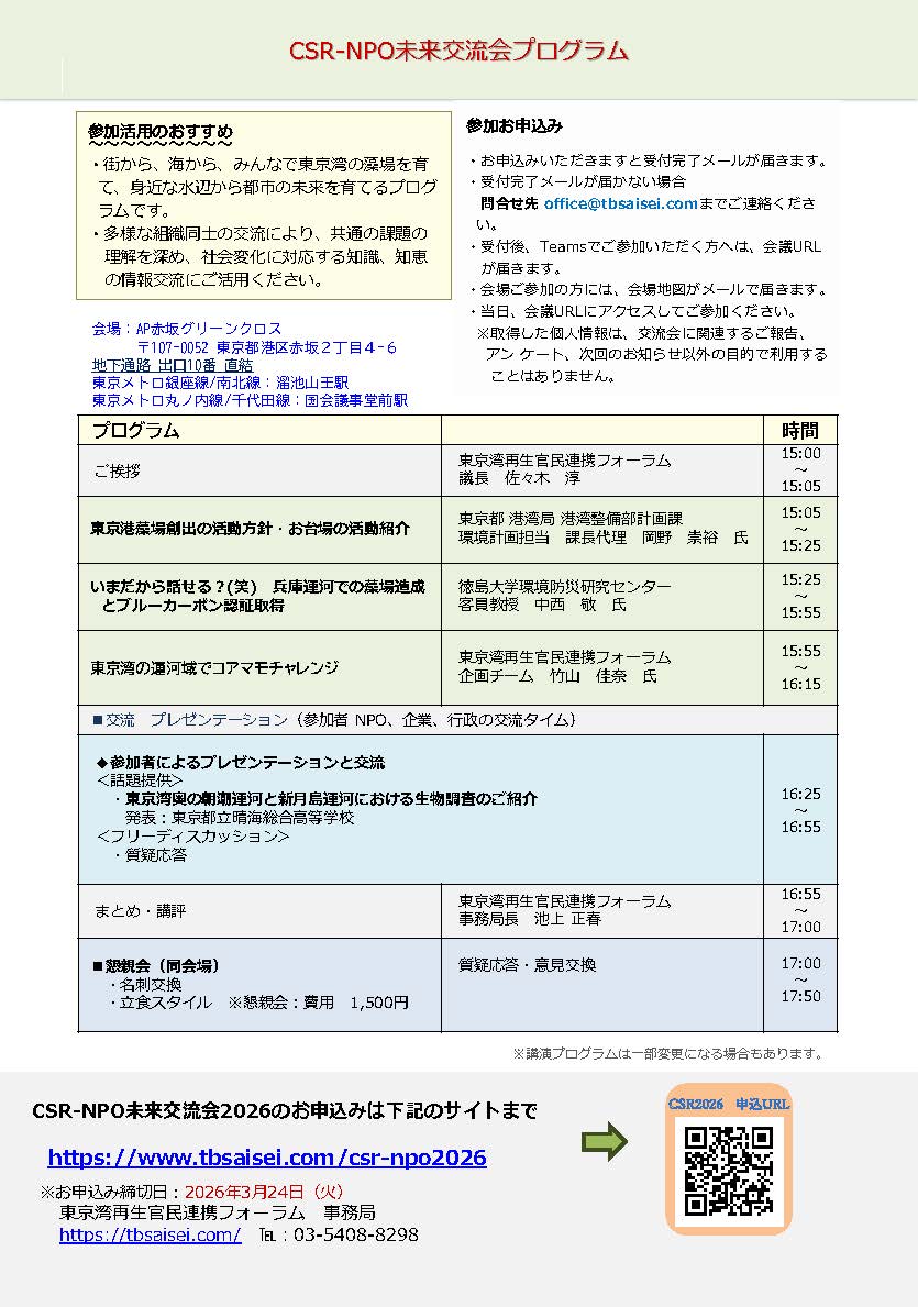 CSR-NPO未来交流会2026 東京湾奥における藻場再生の挑戦